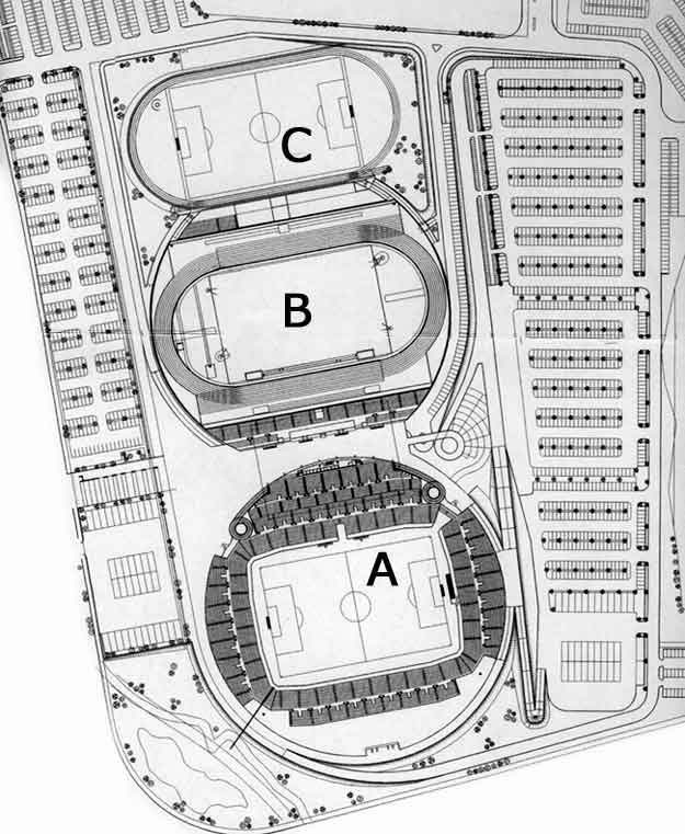 General Floor Plan Key: A = National Football Stadium B = National Athletics Stadium C = Training Field