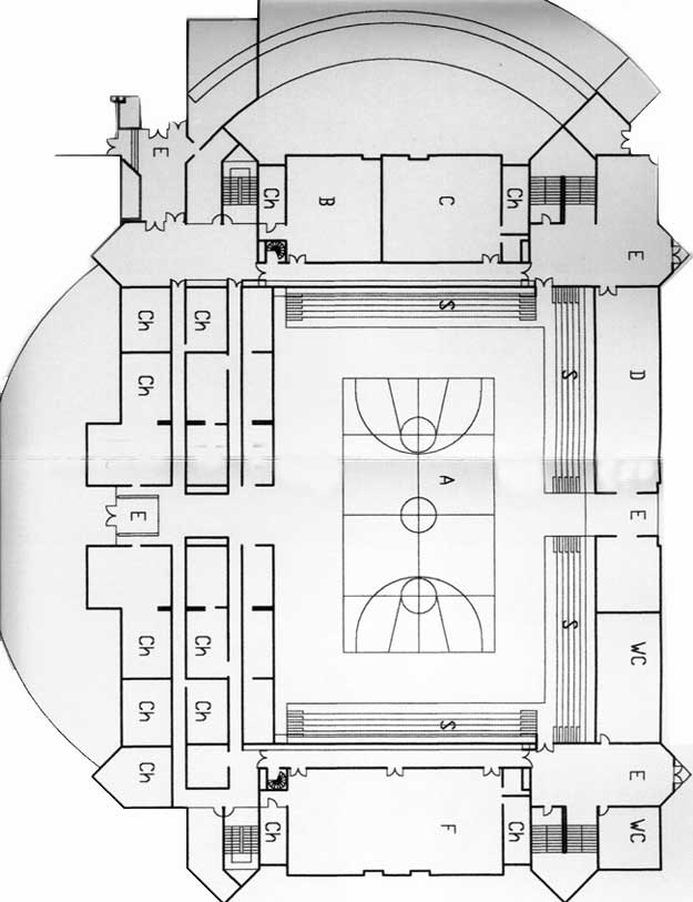 General Floor Plan Key: E = Entrance WC = Toilets Ch = Changing rooms, toilets, showers S = Spectator stands A = Main Indoor Hall B = Hall B (Wrestling) C = Hall C (Karate/Judo) D = Hall D (Rhythmic Gymnastics) F = Hall F (Sports Gymnastics)